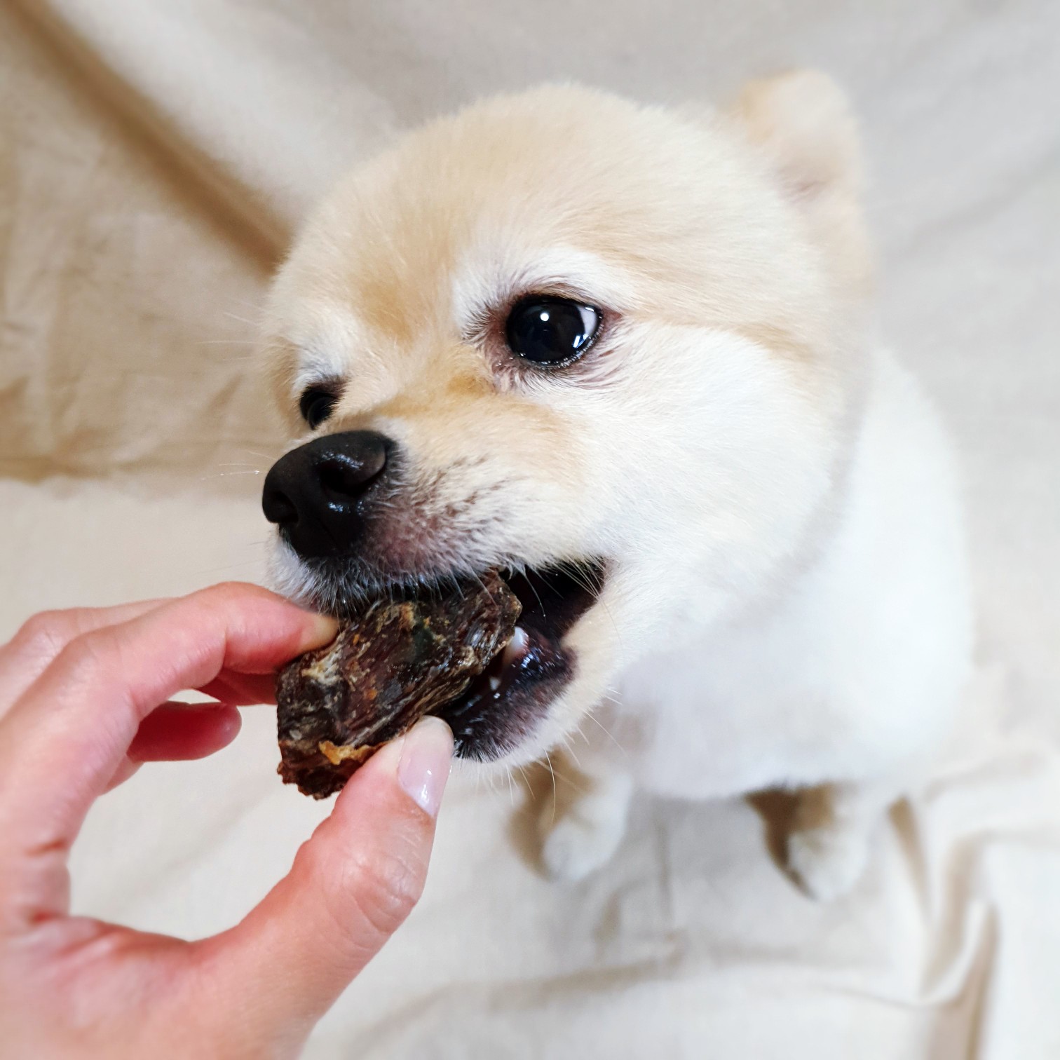 바삭한 식감과 풍미를 향상시키며 살균효과가 있는 근적외선 자연 건조기를 이용하여 더욱 위생적으로 만들어졌다개 멍멍