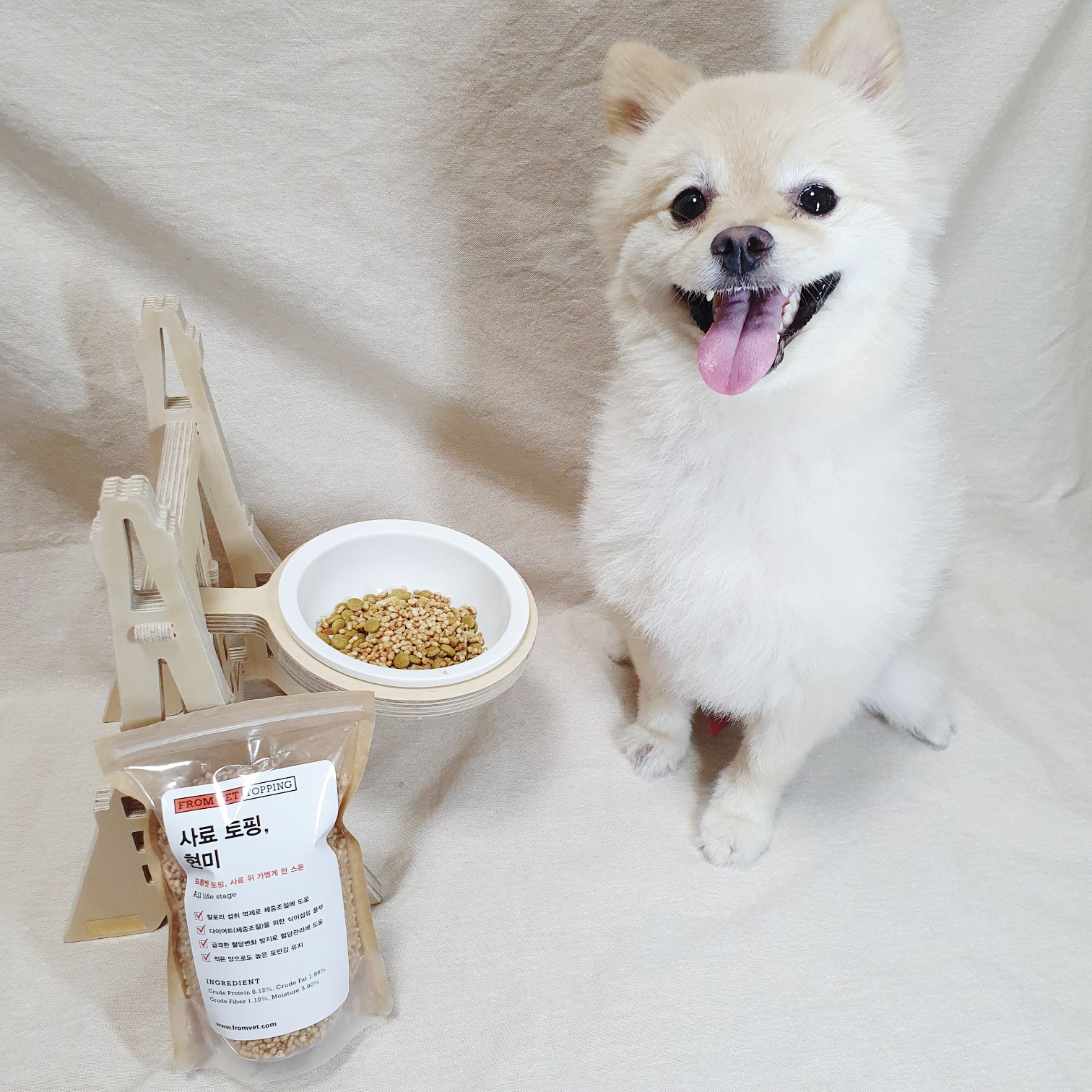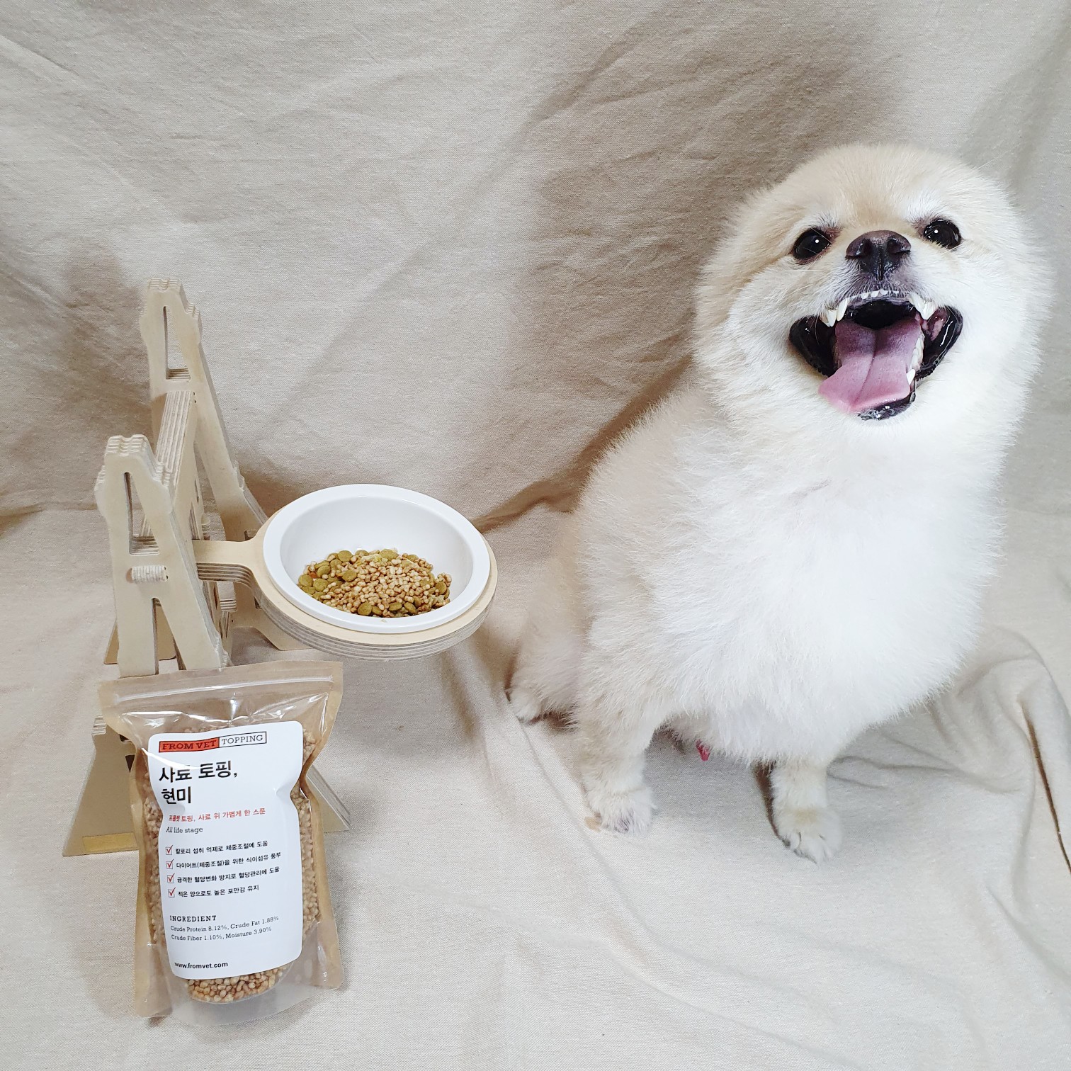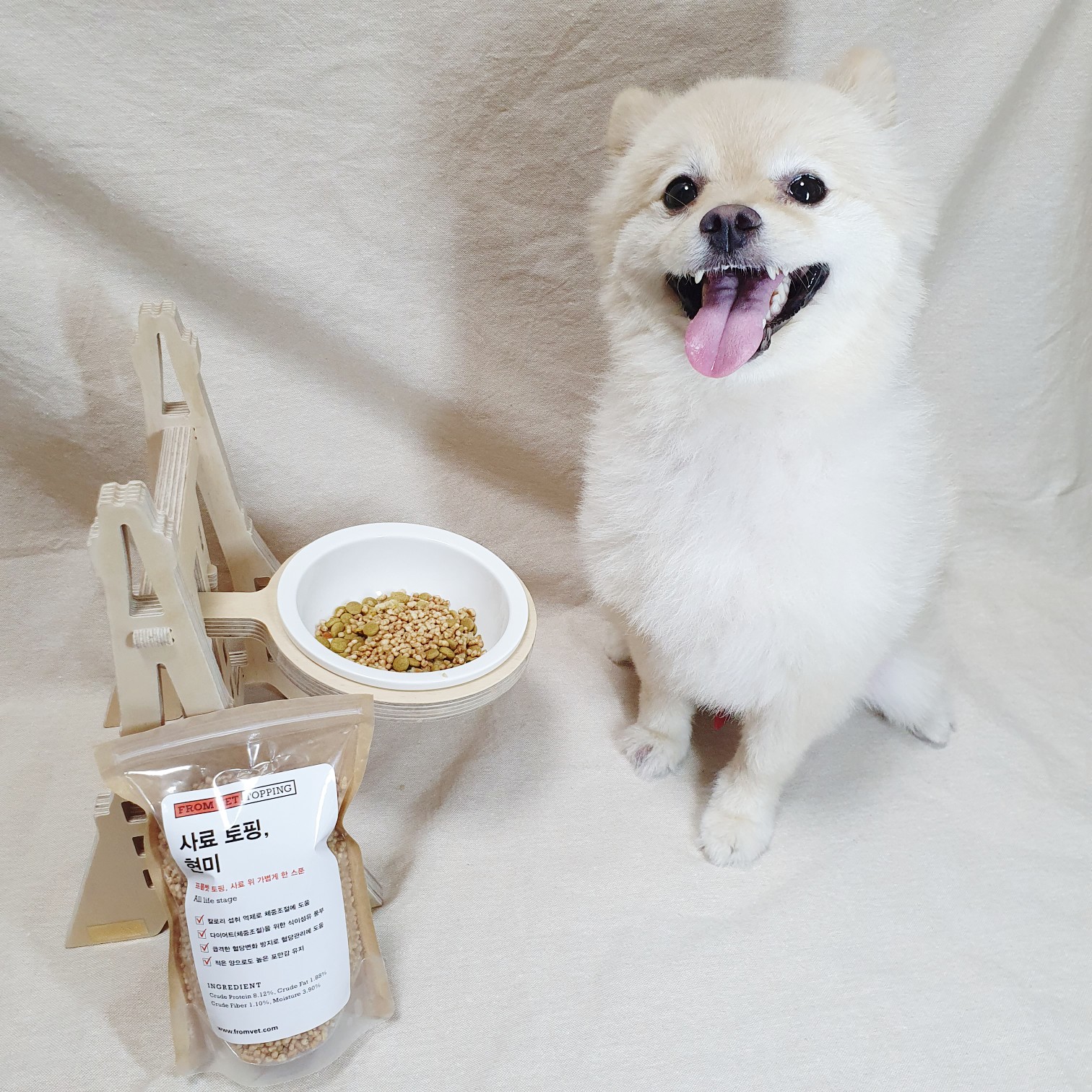 🐾프롬벳의 토핑은 첨가물 없이 순수한 원료를 건조한 제품으로 반려동물을 위해 건강한 재료만을 사용했다개 GMO(유전자 변형 물질), Antibiotics(항생제),Insecticide(살충제),Hormone drug(호르몬제),Coloring(착색료), Preservative(보존료)를 전혀 사용하지 않았따개 멍멍