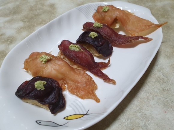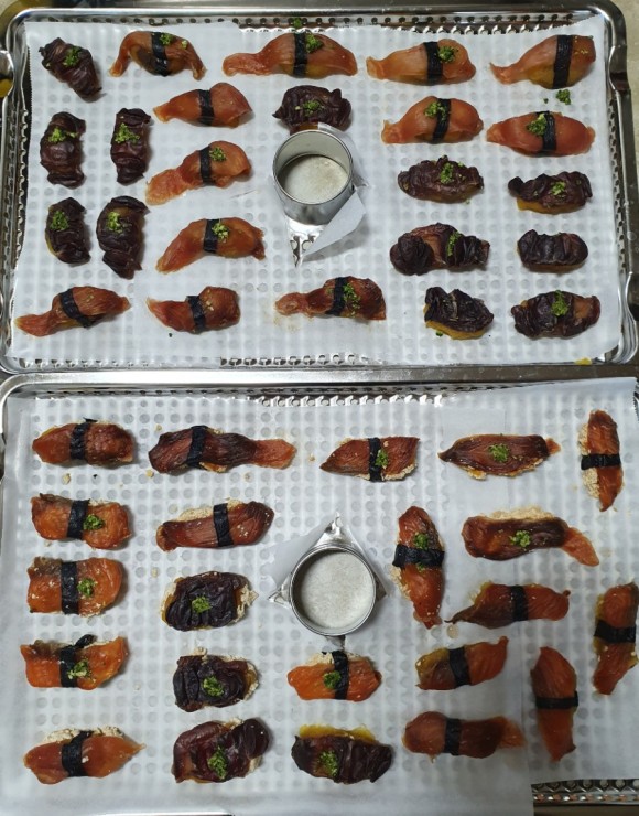 원 데이 클래스에서 만들어 통에 담아 집으로 들고 와 집에 있는 건조기에 넣어서 건조한 초밥👅