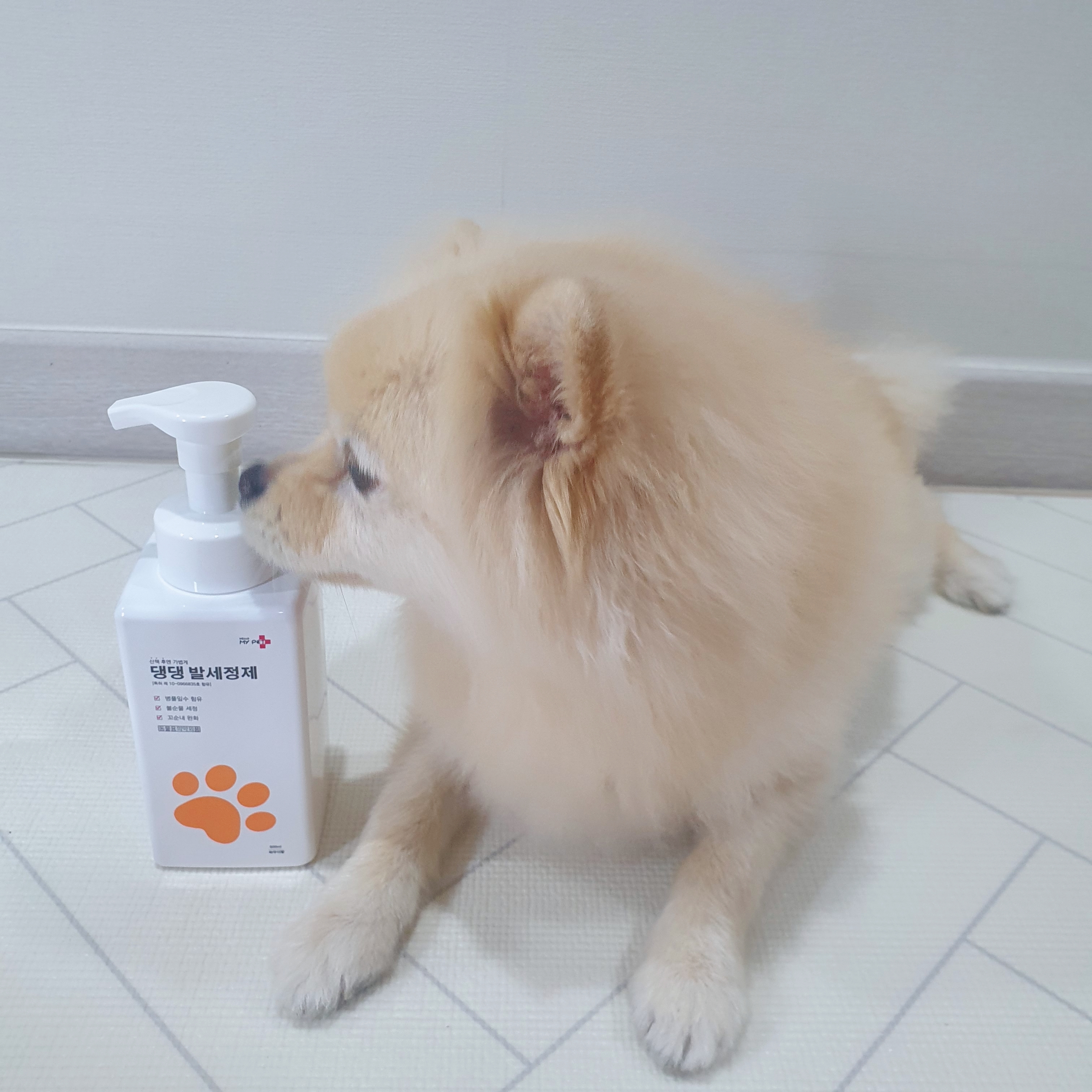 누나야가 한 손은 나를 잡고 한 손은 🐶헬로마이펫 댕댕발세정제🐶펌핑하고~너무너무 편리하다개 진짜 편리하다개
