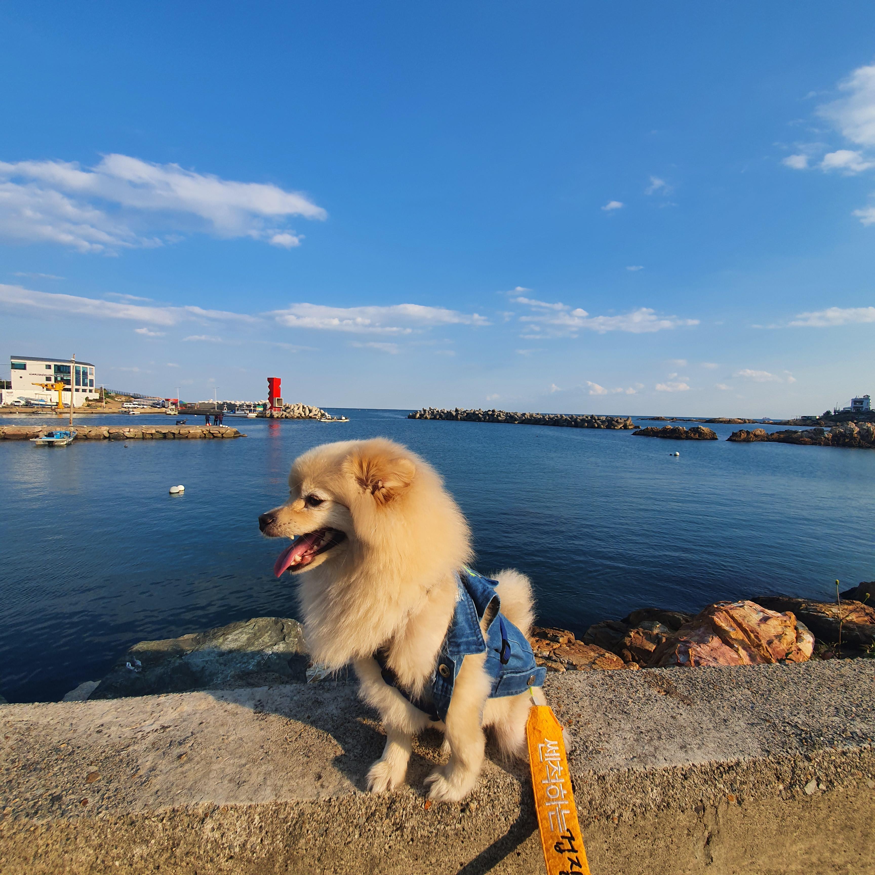 바다에 왔으니 바다 배경으로 사진을 또 찍어야 겠쥬~