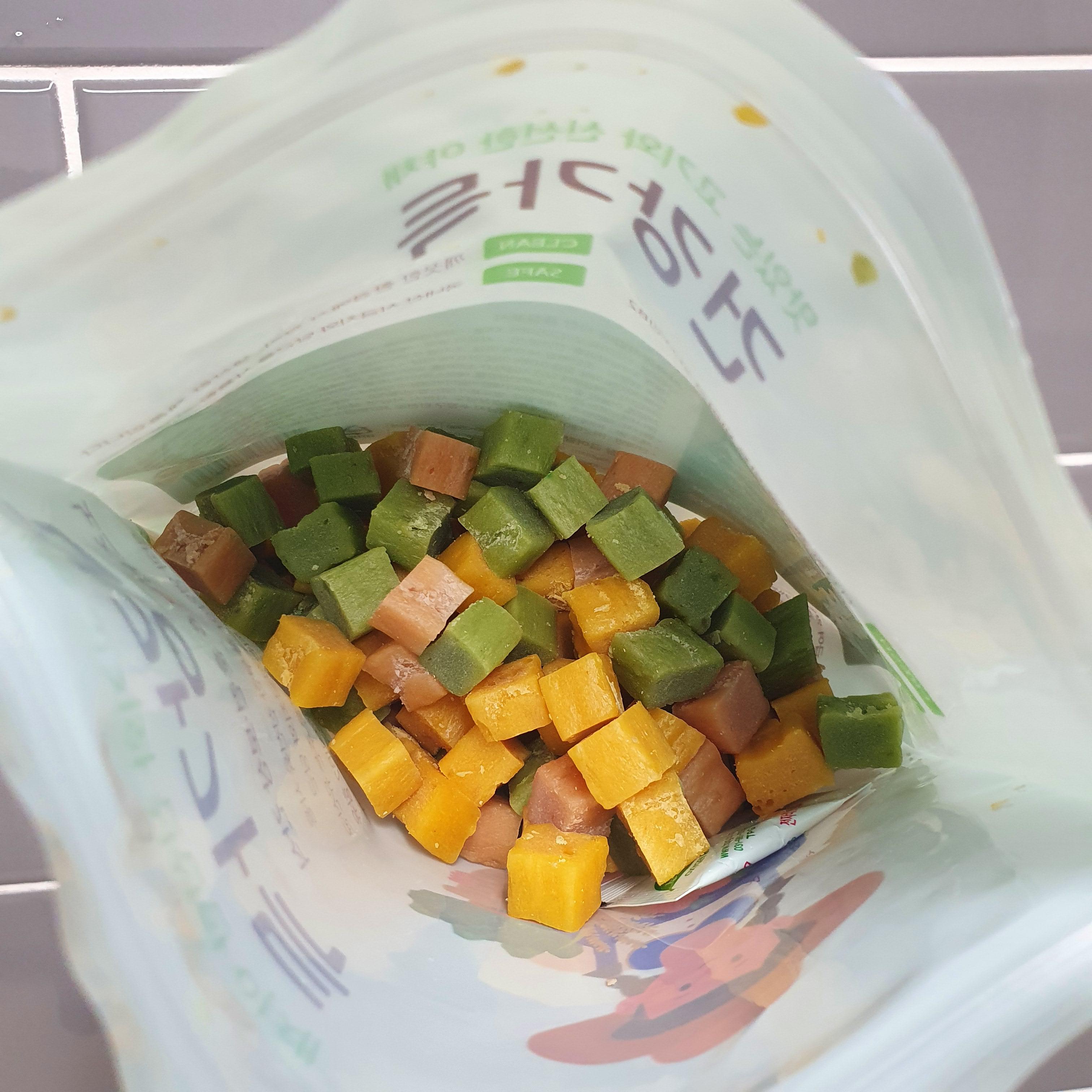 말랑말랑한 한 입 크기로 노즈워크 할 때도 좋고 칭찬받을 때 간식으로도 좋고 공부할 때 훈련용 간식으로도 좋고 룰루랄라
