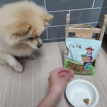 훈련 후 급여할 칭찬, 보상용 간식을 찾는 댕댕이 친구들