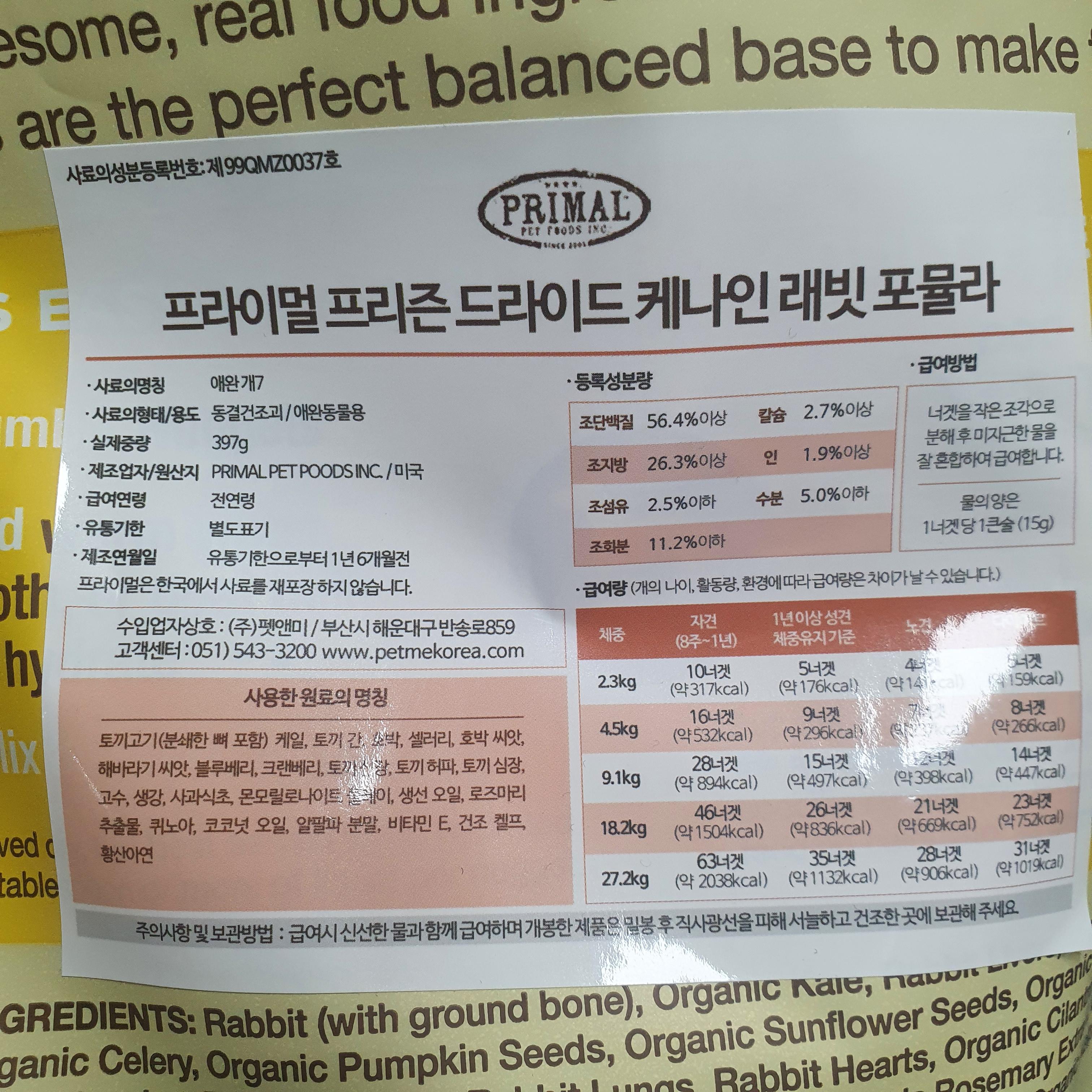 프라이멀 동결건조사료 토끼라개