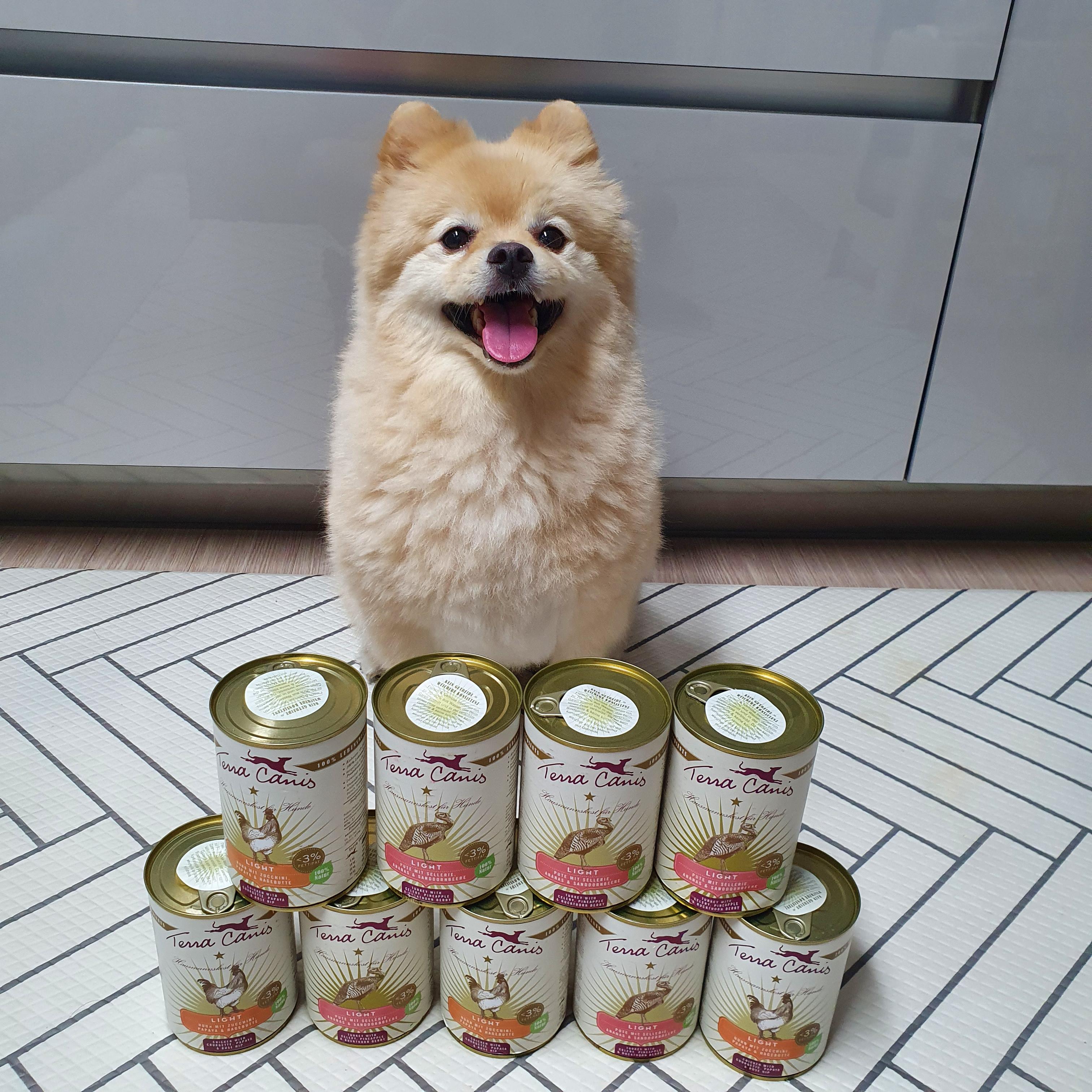 테라카니스 Light 라인은 약 3%의 지방을 함유한 저칼로리 식품으로 다이어트가 필요한 과체중 댕댕이 친구들에게 이상적인 밥이라개.